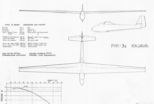 PIK-3c Kajava mini Smaller Kajava. Wingspan 2,74m, length 1,13m. Model is scaled down version of bigger Kajava. Scale is 1:5,56. Construction is similar as the bigger brother. There is also an indoor-glider here. |